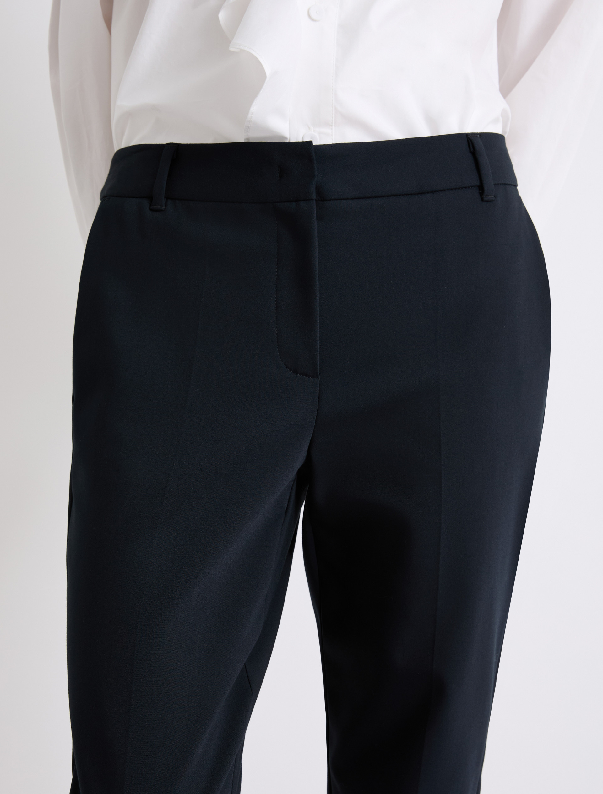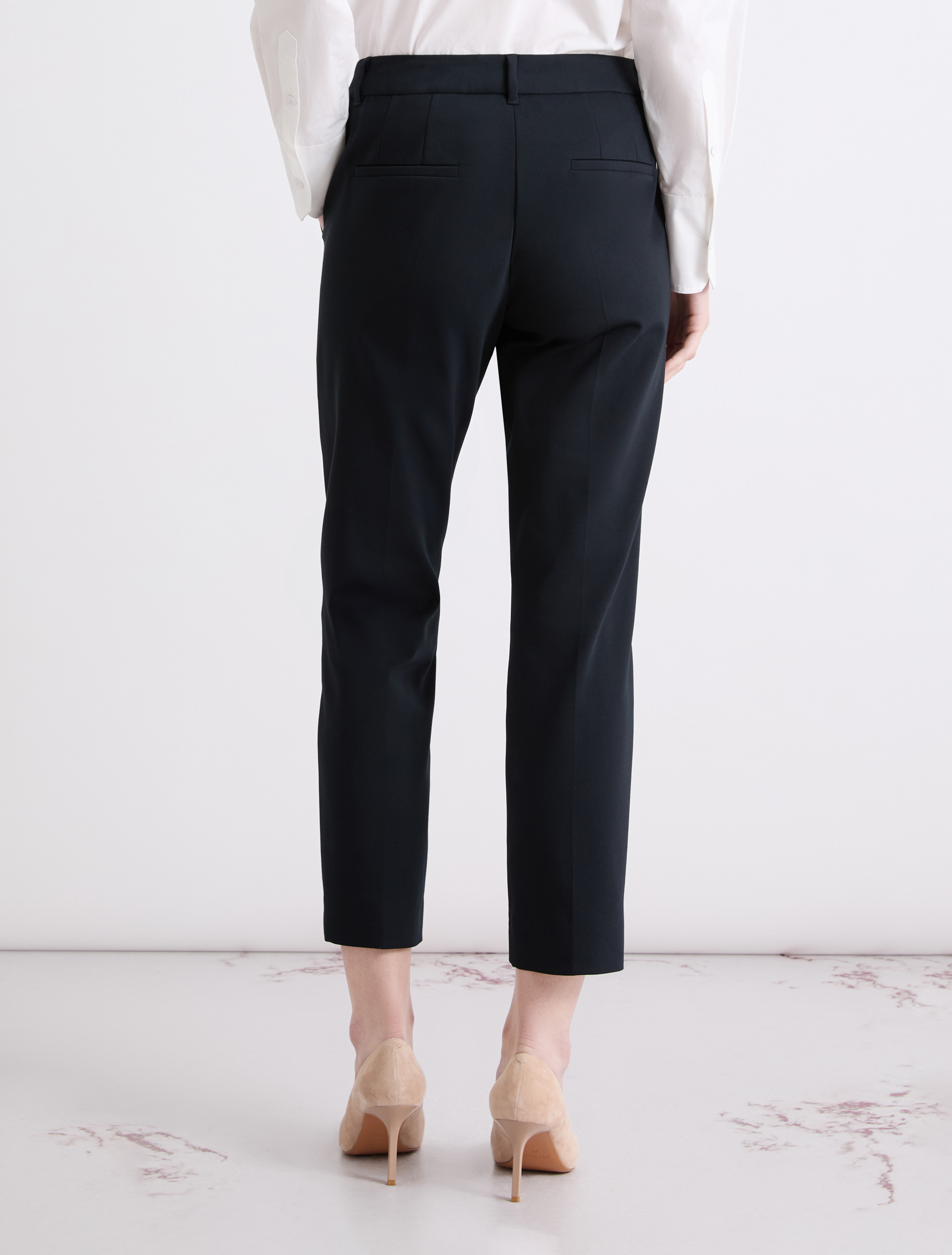 - Trousers in double-faced stretch cotton-blend fabric