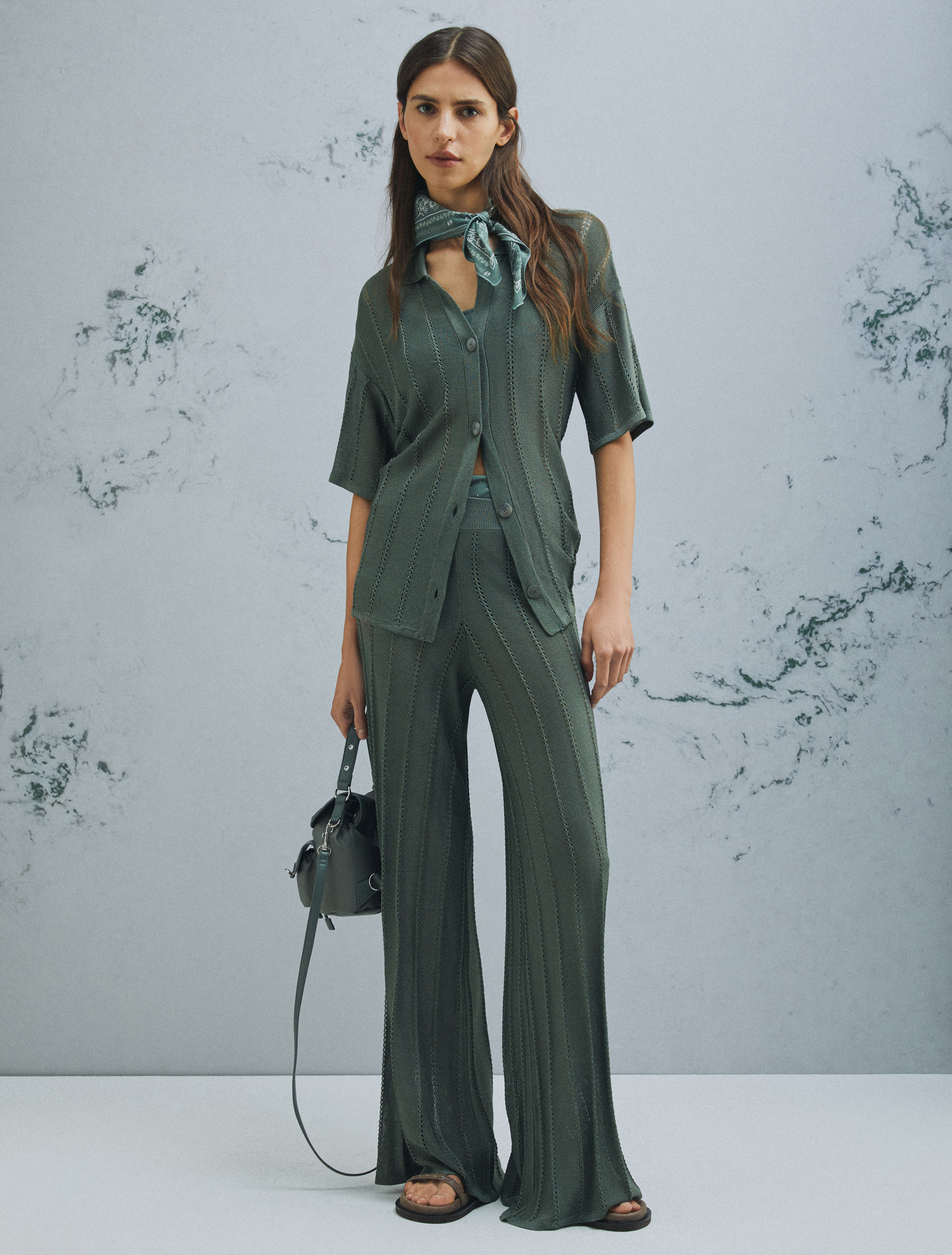 Open-knit trousers - GREEN