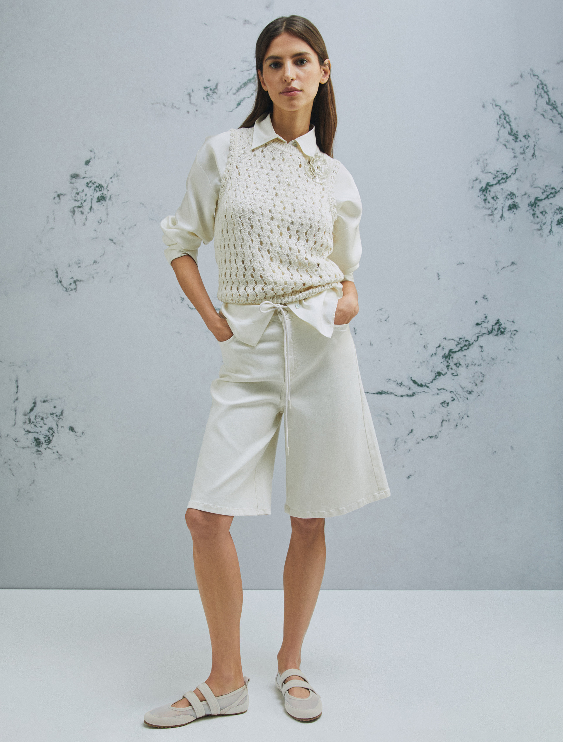 Mouliné cotton top - WOOL WHITE - Marella - 4